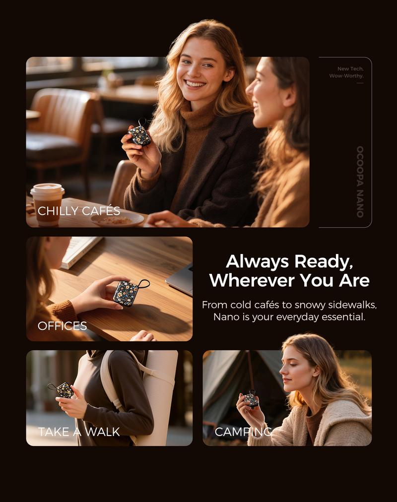 - Ultra Slim & Stylish -Your Winter Essential: Just 0.59” thick and 50g, UT5 Nano fits effortlessly in pockets, gloves, or bags. The blossom-inspired square design transforms a hand warmer into a pocket-sized piece of art—smaller than your AirPods case!
